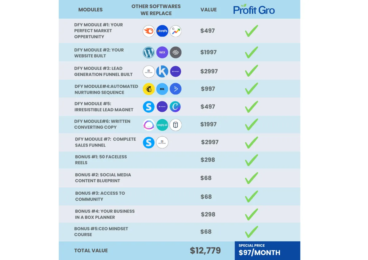 We’ve bundled everything you need to launch, grow, and automate your business—saving you time, stress, and hundreds of dollars every month.